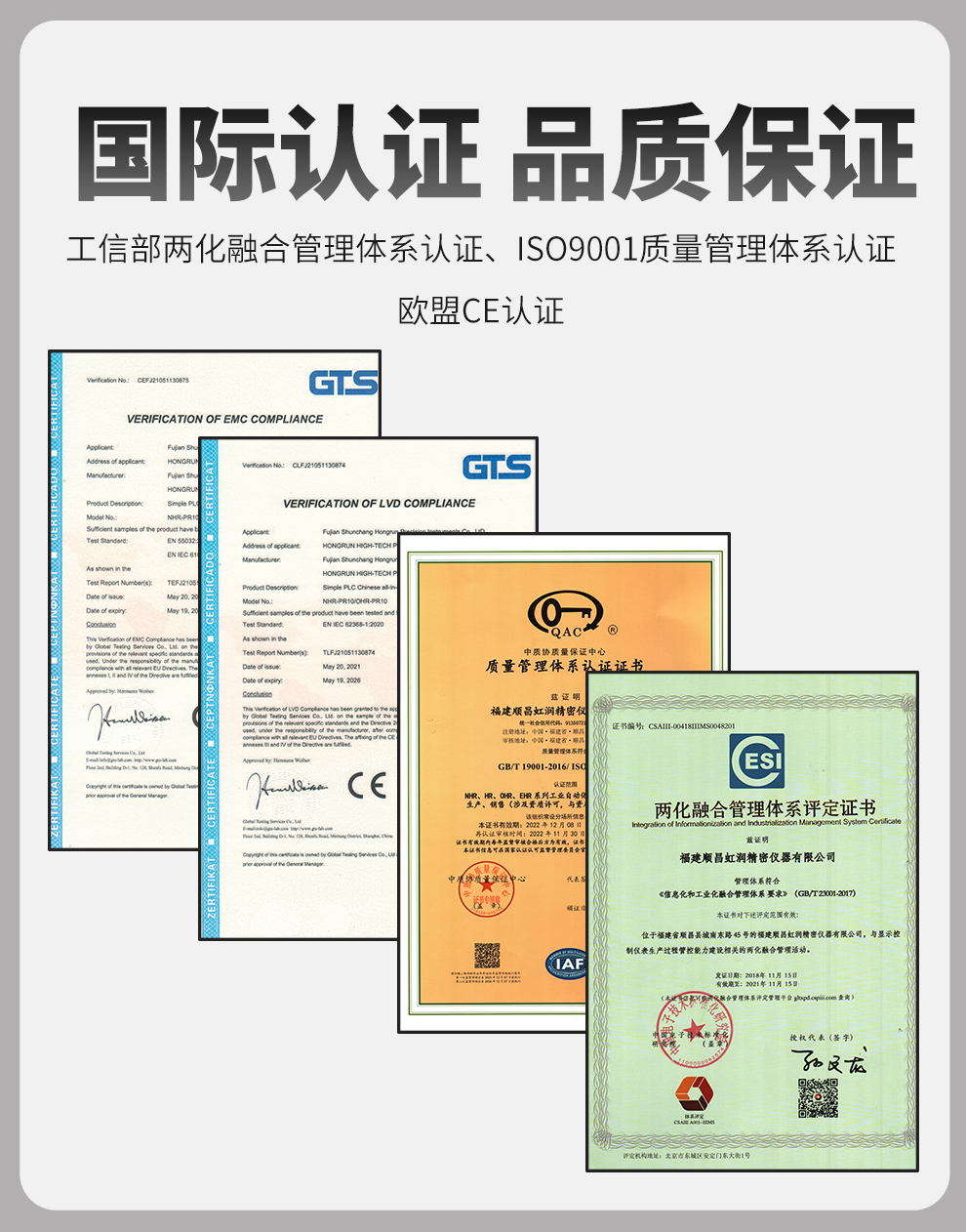 虹潤公司是專業(yè)生產(chǎn)PLC控制器的國家專精特新“小巨人”企業(yè)。生產(chǎn)的簡易PLC中文一體機(jī),具有全中文編程,專業(yè)邏輯控制與時間控制,全隔離設(shè)計,遠(yuǎn)程RS485通訊監(jiān)測等特點。產(chǎn)品獲得智能化控制器、多通道可編程繼電器等2項國家發(fā)明專利;主持起草流程工業(yè)中電氣/儀表和控制系統(tǒng)的試車國家標(biāo)準(zhǔn),通信系統(tǒng)多通道數(shù)據(jù)采集控制終端規(guī)范軍用標(biāo)準(zhǔn),以及現(xiàn)場設(shè)備集成等5項智能制造國家標(biāo)準(zhǔn),參與國際5G標(biāo)準(zhǔn)制定,取得中文可編程繼電器等2項相關(guān)軟件著作權(quán)。產(chǎn)品廣泛應(yīng)用于實驗室、市政工程、農(nóng)業(yè)養(yǎng)殖、包裝機(jī)械、食品行業(yè)、樓宇自控等諸多領(lǐng)域。