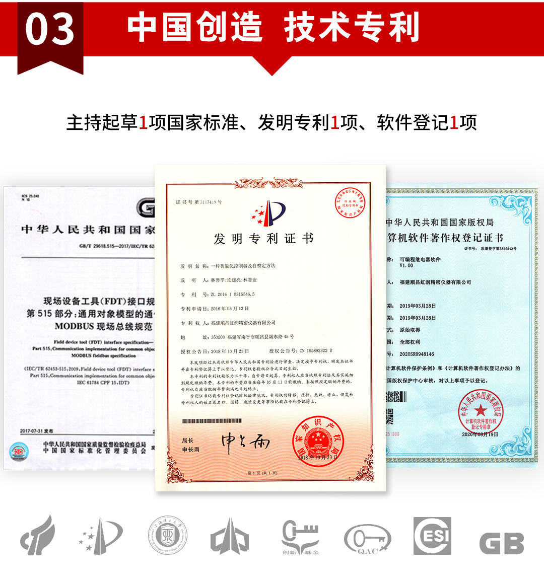 虹潤公司是專業(yè)生產(chǎn)PLC控制器的國家專精特新“小巨人”企業(yè)。生產(chǎn)的簡易PLC控制器,具有全隔離設(shè)計(jì),中文編程,專業(yè)邏輯控制與時(shí)間,梯形圖編程方式,遠(yuǎn)程RS485通訊監(jiān)測等特點(diǎn)。產(chǎn)品獲得智能化控制器、多通道可編程繼電器等2項(xiàng)國家發(fā)明專利;主持起草流程工業(yè)中電氣/儀表和控制系統(tǒng)的試車國家標(biāo)準(zhǔn),通信系統(tǒng)多通道數(shù)據(jù)采集控制終端規(guī)范軍用標(biāo)準(zhǔn),以及現(xiàn)場設(shè)備集成等5項(xiàng)智能制造國家標(biāo)準(zhǔn),參與國際5G標(biāo)準(zhǔn)制定,取得可編程繼電器等2項(xiàng)相關(guān)軟件著作權(quán)。產(chǎn)品廣泛應(yīng)用于工業(yè)自動化設(shè)備、電氣自動化系統(tǒng)、農(nóng)業(yè)灌溉、包裝機(jī)械、印刷機(jī)械、樓宇自控等諸多領(lǐng)域。