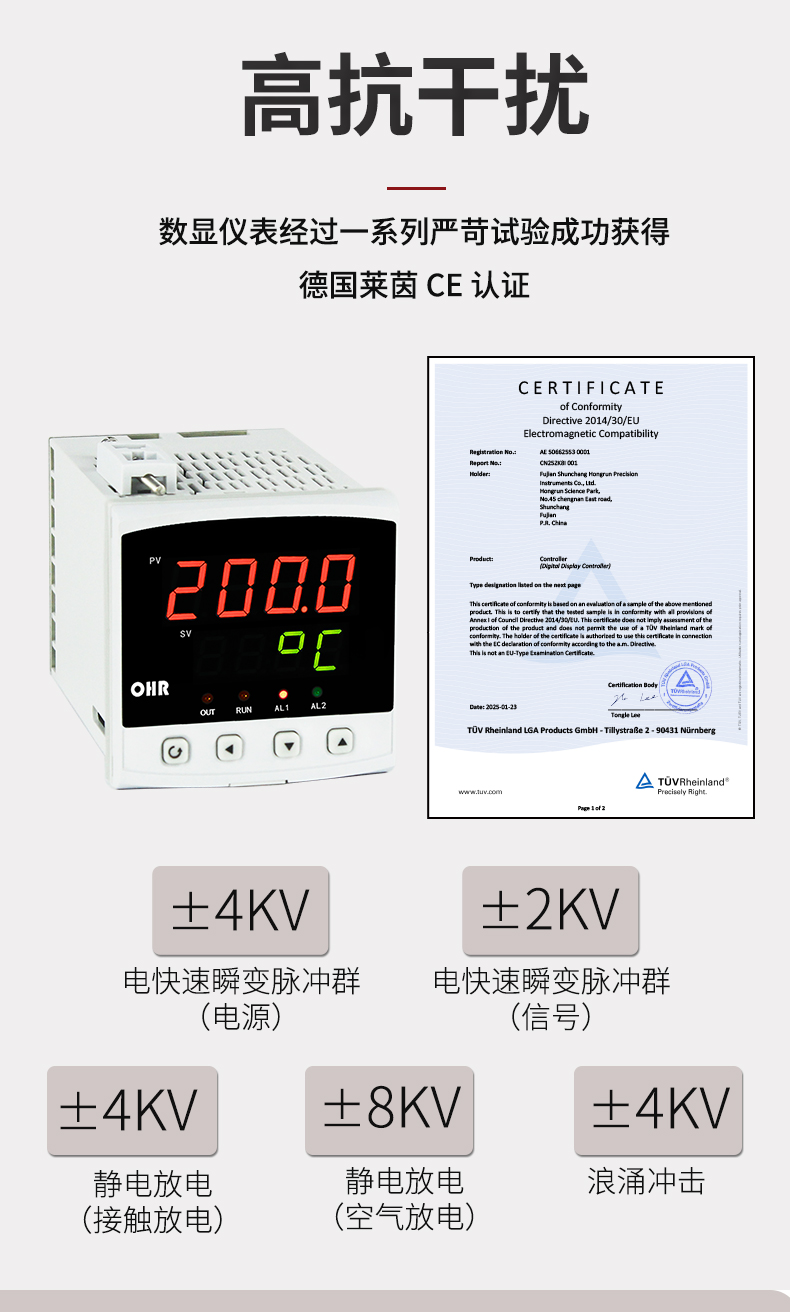 虹潤公司是專業(yè)生產數顯表的國家專精特新“小巨人”企業(yè),生產的簡易型數字顯示控制儀,具有全切換信號輸入,多種外形尺寸,高抗干擾,輸入/輸出/電源三隔離,性價比高等特點。該產品不僅通過德國萊茵 CE 認證,還獲得巡回檢測顯示方法及裝置、儀表殼體等2項國家發(fā)明專利,主持起草工業(yè)過程控制系統(tǒng)用模擬輸入兩位或多位輸出儀表、物聯網智能溫度儀表通用技術條件等2項國家標準,以及通信系統(tǒng)多通道數據采集控制終端規(guī)范軍用標準,參與國際5G標準制定,取得簡易數顯儀表等3項相關軟件著作權。產品廣泛應用于電力、石化、冶金、化工、造紙、食品、輕工、制藥、熱處理、水處理、機械配套等各種工業(yè)現場。