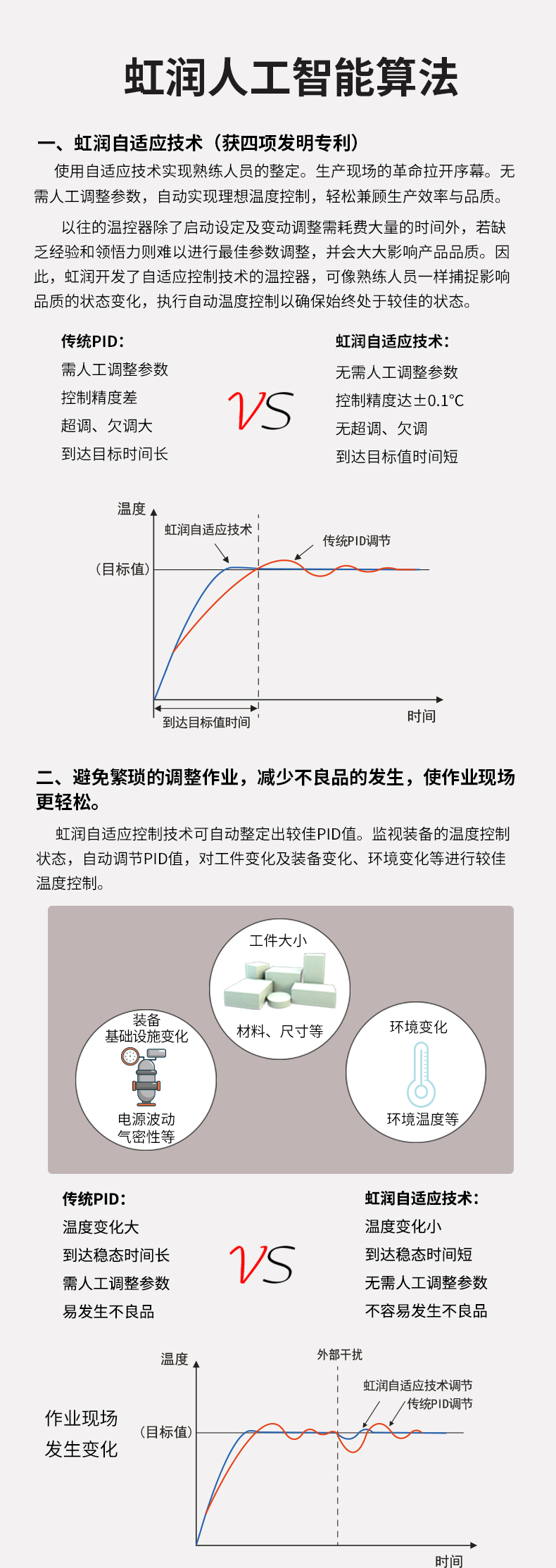 虹潤公司是專業(yè)生產(chǎn)無紙記錄儀的國家專精特新“小巨人”企業(yè)。生產(chǎn)的觸摸屏調(diào)節(jié)無紙記錄儀,具有觸摸大屏顯示,真正人工智能算式,無需人工整定參數(shù),控制精度達士0.1°C,數(shù)據(jù)記錄與轉(zhuǎn)存, RS485/以太網(wǎng)通訊,5/7/9英寸可選等特點。產(chǎn)品獲得智能化控制器、人工智能調(diào)節(jié)器及調(diào)節(jié)方法、模糊PID控制儀及控制方法、平板無紙記錄儀、巡回檢測顯示方法及裝置等5項國家發(fā)明專利,主持起草物聯(lián)網(wǎng)智能記錄儀表通用技術(shù)條件、物聯(lián)網(wǎng)智能溫度儀表通用技術(shù)條件、工業(yè)過程測量和控制系統(tǒng)用智能調(diào)節(jié)器等3項國家標(biāo)準,通信系統(tǒng)多通道數(shù)據(jù)采集控制終端規(guī)范軍用標(biāo)準,以及空間數(shù)據(jù)與信息數(shù)據(jù)傳輸系統(tǒng)等2項航天標(biāo)準,參與國際5G標(biāo)準制定,取得觸摸屏彩色調(diào)節(jié)無紙記錄儀等3項相關(guān)軟件著作權(quán)。產(chǎn)品廣泛應(yīng)用于電力、石化、冶金、化工、食品、制藥、熱處理、水處理、機械配套等諸多領(lǐng)域。