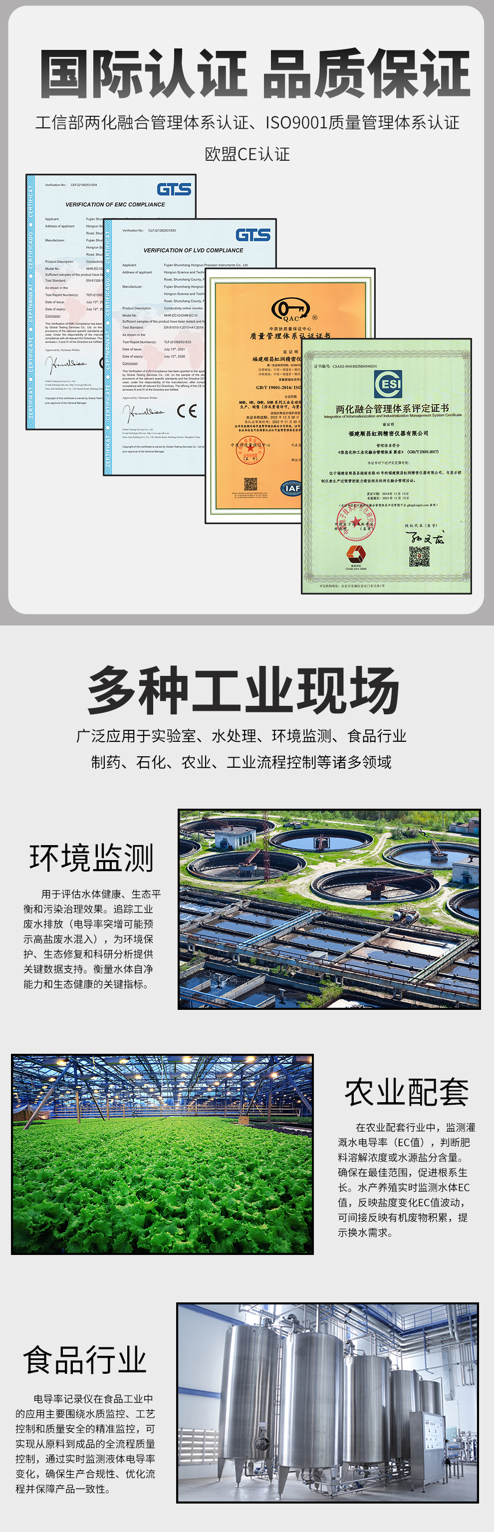 虹潤(rùn)公司是專業(yè)生產(chǎn)水質(zhì)分析儀的國(guó)家專精特新“小巨人”企業(yè)。生產(chǎn)的電導(dǎo)率記錄儀,具有模擬電極與數(shù)字電極切換輸入、測(cè)量精準(zhǔn)穩(wěn)定不跳字,數(shù)據(jù)記錄與轉(zhuǎn)存、RS485/以太網(wǎng)通訊,配套上位機(jī)管理軟件等特點(diǎn)。產(chǎn)品獲得一種平板無(wú)紙記錄儀、智能化控制器等2項(xiàng)國(guó)家發(fā)明專利;主持起草物聯(lián)網(wǎng)智能記錄儀表通用技術(shù)條件、現(xiàn)場(chǎng)設(shè)備工具(FDT)接口規(guī)范.、過(guò)程分析技術(shù)系統(tǒng)等3項(xiàng)國(guó)家標(biāo)準(zhǔn),以及通信系統(tǒng)多通道數(shù)據(jù)采集控制終端規(guī)范軍用標(biāo)準(zhǔn),參與國(guó)際5G標(biāo)準(zhǔn)制定,取得電導(dǎo)率無(wú)紙記錄儀表等4項(xiàng)相關(guān)軟件著作權(quán)。產(chǎn)品廣泛應(yīng)用于環(huán)保水務(wù)、市政供水、水產(chǎn)養(yǎng)殖、農(nóng)業(yè)灌溉、科研實(shí)驗(yàn)等諸多領(lǐng)域。