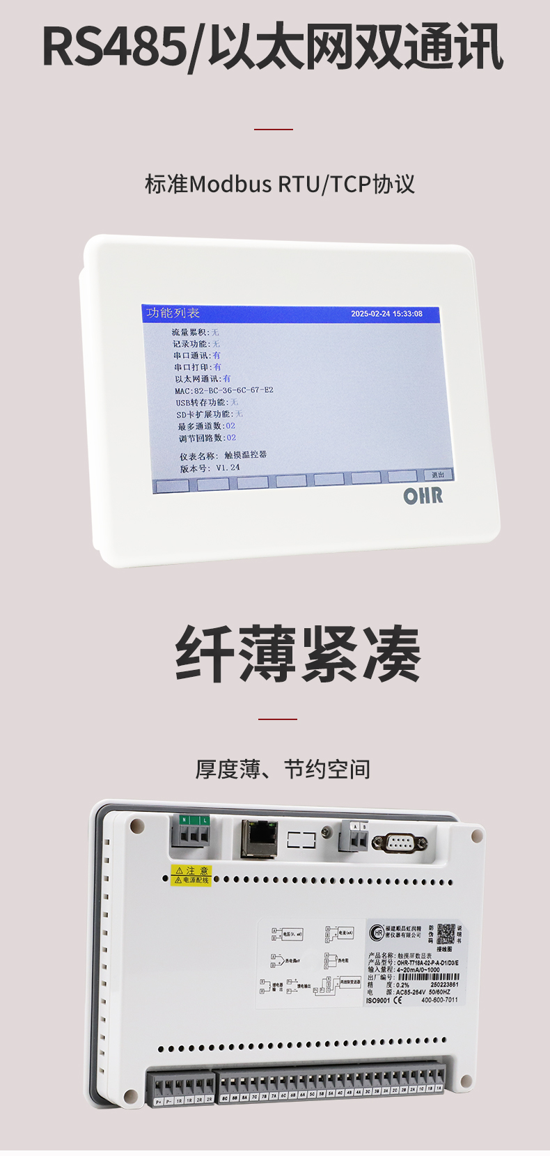 虹潤公司是專業(yè)生產無紙記錄儀的國家專精特新“小巨人”企業(yè)。生產的觸摸屏溫控器,具有觸摸大屏顯示,真正人工智能算式,無需人工整定參數,控制精度達士0.1°C, RS485/以太網通訊,5/7/9英寸可選等特點。產品獲得智能化控制器、人工智能調節(jié)器及調節(jié)方法、模糊PID控制儀及控制方法、平板無紙記錄儀、巡回檢測顯示方法及裝置等5項國家發(fā)明專利,主持起草物聯網智能記錄儀表通用技術條件、物聯網智能溫度儀表通用技術條件、工業(yè)過程測量和控制系統(tǒng)用智能調節(jié)器等3項國家標準,通信系統(tǒng)多通道數據采集控制終端規(guī)范軍用標準,以及空間數據與信息數據傳輸系統(tǒng)等2項航天標準,參與國際5G標準制定,取得觸摸屏彩色調節(jié)無紙記錄儀等3項相關軟件著作權。產品廣泛應用于電力、石化、冶金、化工、食品、制藥、熱處理、水處理、機械配套等諸多領域。