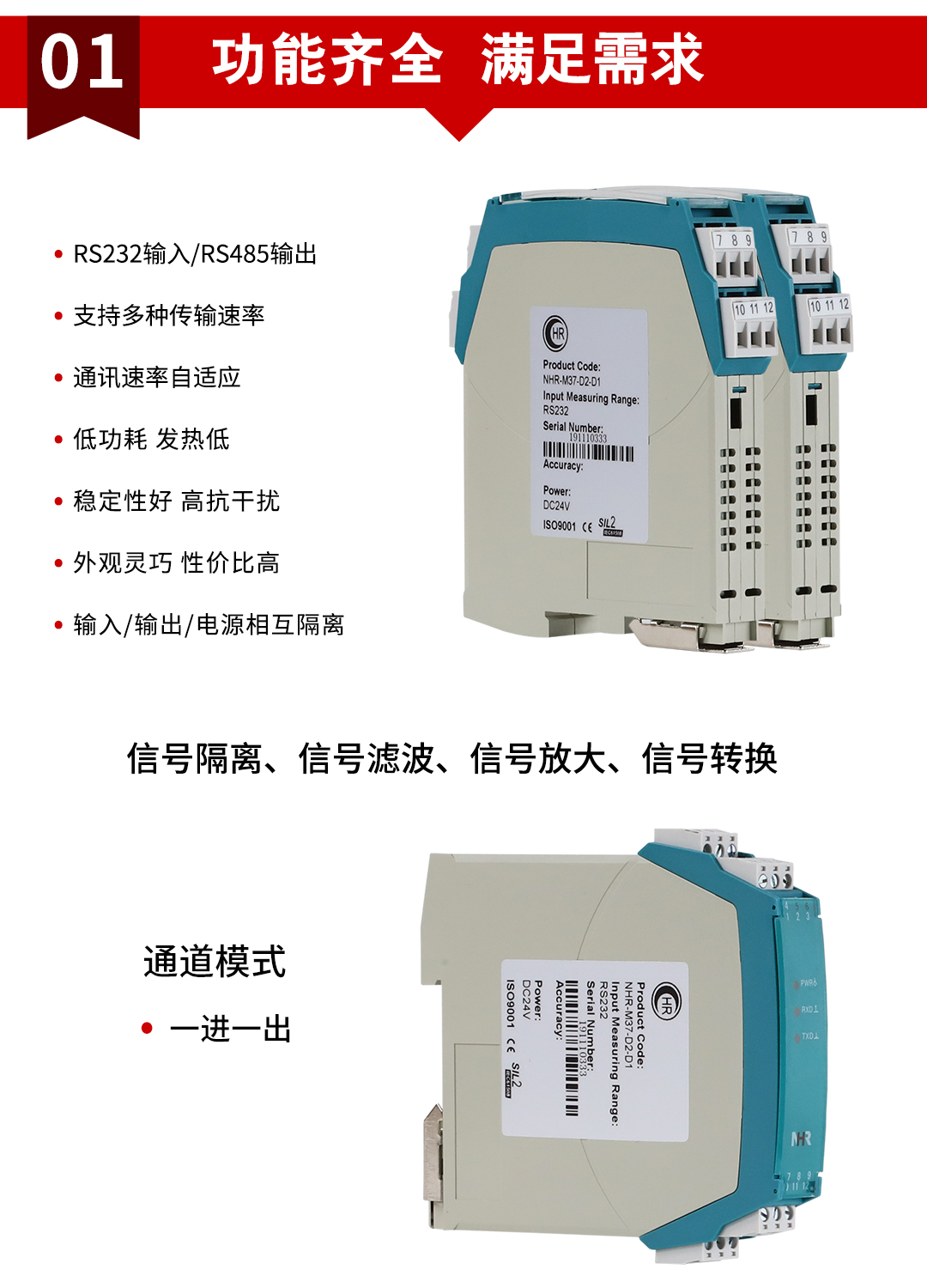 虹潤公司是專業(yè)生產隔離器的國家專精特新“小巨人”企業(yè)。生產的智能信號隔離器涵蓋通訊轉換器、電流電壓變送器、溫度變送器、配電器、開關量轉換器及頻率轉換器等多種產品類型。產品獲得信號隔離器、一種二端子模塊、無源信號隔離器等3項國家發(fā)明專利,主持起草現(xiàn)場設備工具(FDT)接口規(guī)范、工業(yè)過程測量和控制系統(tǒng)用隔離式安全柵、工業(yè)過程測量和控制系統(tǒng)用配電器等3項國家標準,以及通信系統(tǒng)多通道數(shù)據采集控制終端規(guī)范軍用標準,參與國際5G標準制定,取得導軌式智能隔離器、頻率轉換器等3項相關軟件著作權。產品廣泛電力、冶金、工業(yè)電爐、變電站、高壓電機房等需要電隔離的工業(yè)自動化控制系統(tǒng)。