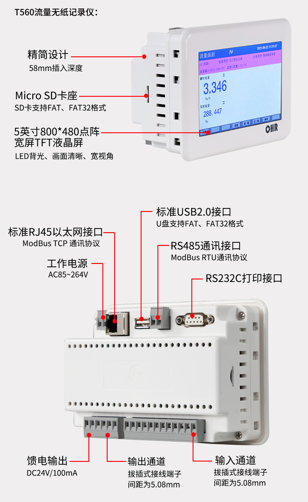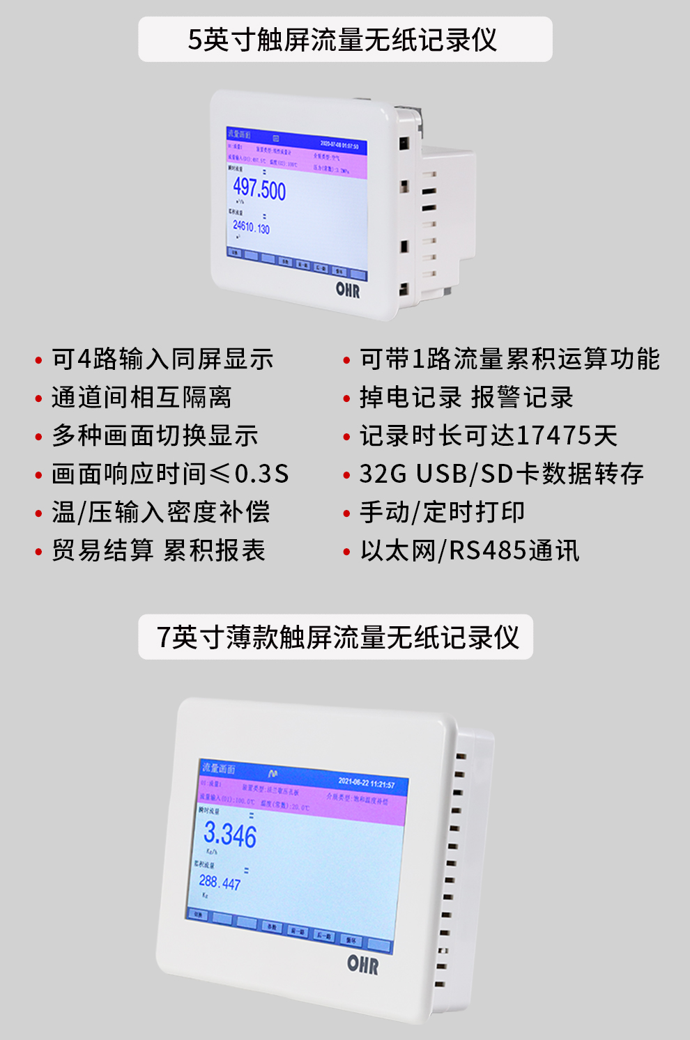 OHR-T系列觸摸屏流量無紙記錄儀