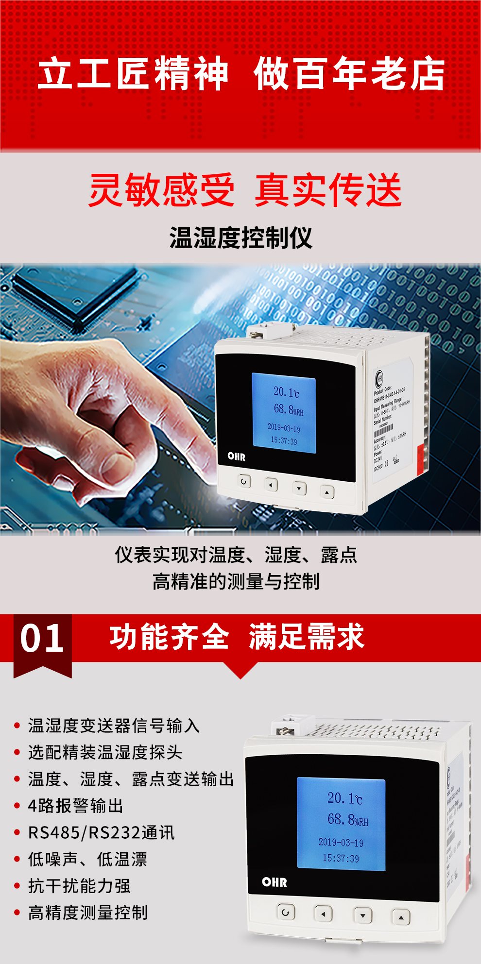 虹潤(rùn)公司是專(zhuān)業(yè)生產(chǎn)環(huán)境監(jiān)測(cè)儀表的國(guó)家專(zhuān)精特新“小巨人”企業(yè)。生產(chǎn)的盤(pán)裝式溫濕度控制器,具有溫度、濕度、露點(diǎn)高精準(zhǔn)的測(cè)量,壁掛式結(jié)構(gòu),IP65防護(hù)穩(wěn)定性強(qiáng),高抗干擾,帶RS485/RS232通訊輸出等級(jí)等特點(diǎn)。產(chǎn)品獲得一種手持式低功耗溫濕度檢測(cè)儀、大屏幕溫濕度記錄儀等2項(xiàng)國(guó)家發(fā)明專(zhuān)利,主持起草物聯(lián)網(wǎng)智能溫度儀表通用技術(shù)條件、冷鏈溫度記錄儀等2項(xiàng)國(guó)家標(biāo)準(zhǔn),通信系統(tǒng)多通道數(shù)據(jù)采集控制終端規(guī)范軍用標(biāo)準(zhǔn),以及現(xiàn)場(chǎng)設(shè)備集成等5項(xiàng)智能制造國(guó)家標(biāo)準(zhǔn),參與國(guó)際5G標(biāo)準(zhǔn)制定,取得溫濕度儀表等2項(xiàng)相關(guān)軟件著作權(quán)。產(chǎn)品廣泛應(yīng)用于工業(yè)現(xiàn)場(chǎng)、農(nóng)業(yè)大棚、倉(cāng)儲(chǔ)物流、地下管廊、養(yǎng)殖孵化、配電機(jī)房等諸多領(lǐng)域。